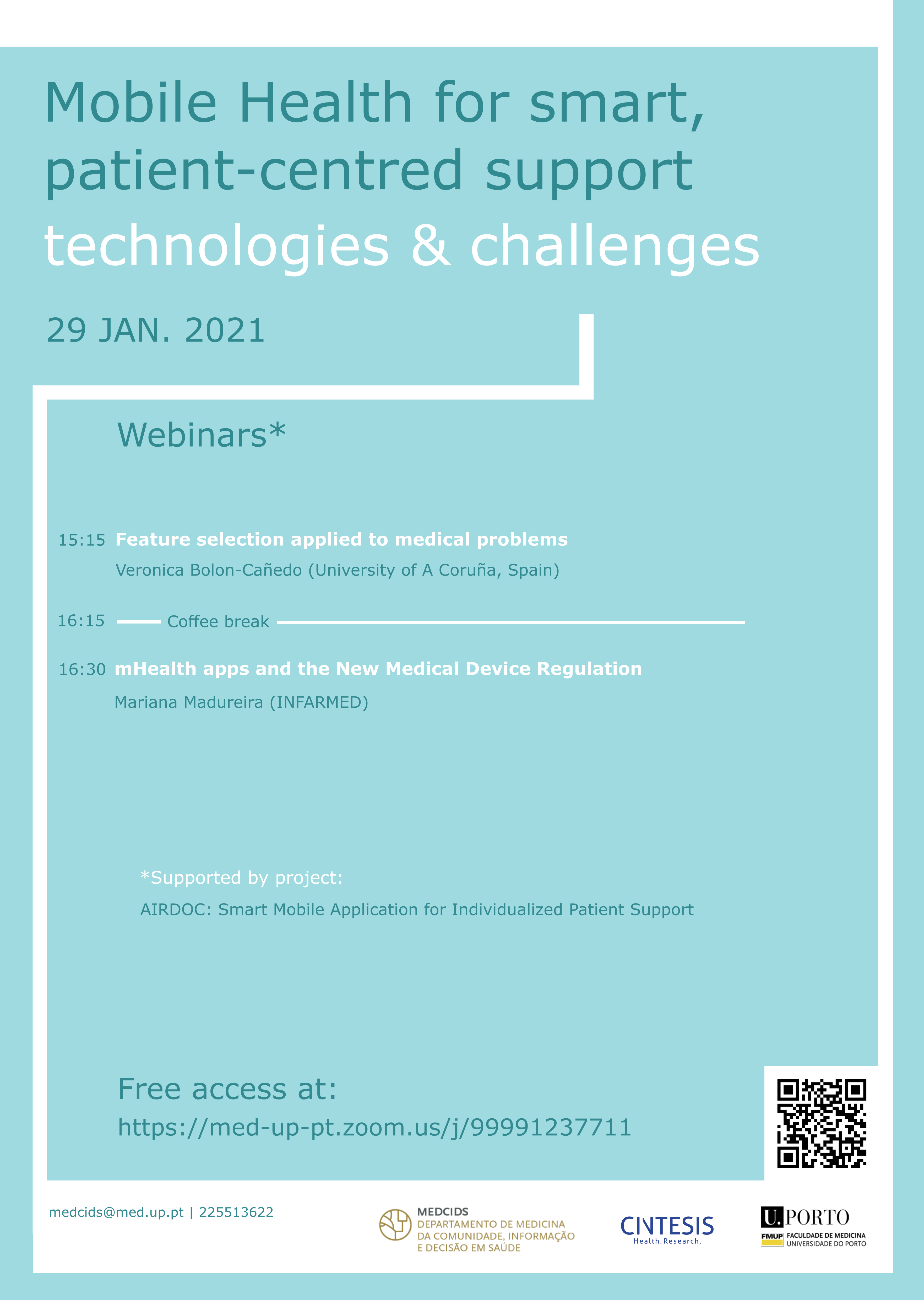 As sessões seguintes irão decorrer no âmbito da Winter School 2021, da responsabilidade do Departamento de Medicina da Comunidade, Informação e Decisão em Saúde (MEDCIDS) da FMUP, que também conta com o apoio do CINTESIS.